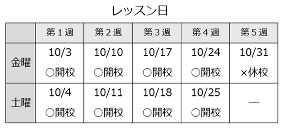10月31日(金)は休校となります。